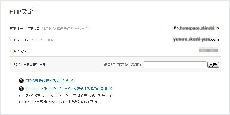 あとは「FTPユーザー名」と「FTPパスワード」を入力すればOKです。